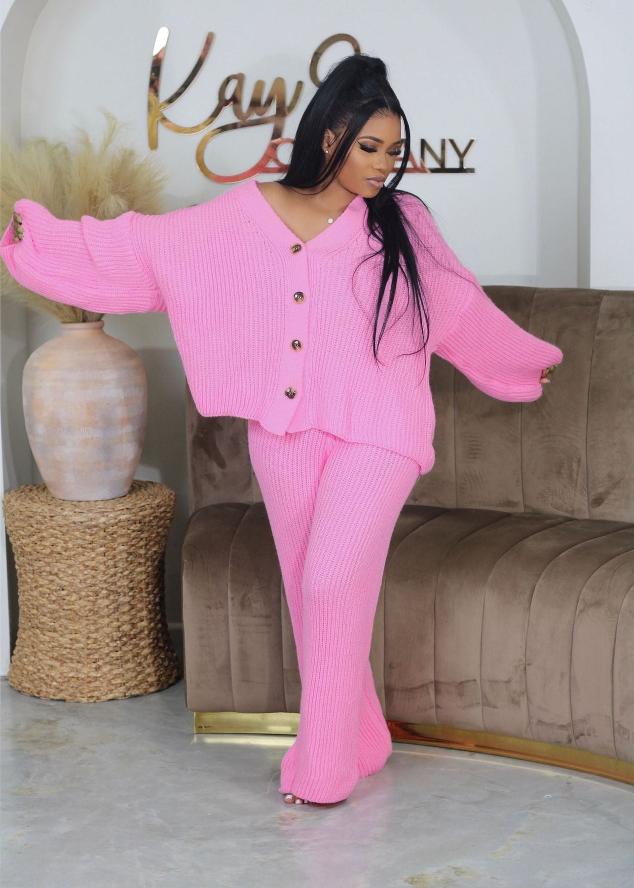 AMIKA™ - Casual V-Neck Cardigan and Wide Leg Pants Set